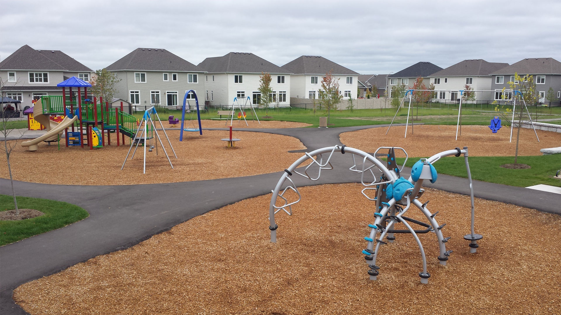 Fibertop® is the ideal surfacing solution for new and retrofitted playgrounds. It is “made in Canada” engineered impact surfacing system. Specially processed, virgin wood grindings in combination with high performance drainage layer, exclusive wear mats and flexible edging complete the Fibertop® System. This Engineered Wood Fiber (EWF) playground surfacing has been created for accessible playground configurations.
